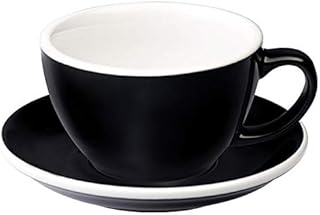 LOVERAMICS ラブラミクス エッグ ボウル&ソーサー 250ml ブラック ラテボウル カプチーノカップ (black, カップ&ソーサー) WCSラテアート世界大会公認