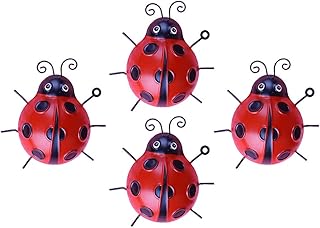 WINOMO 4個金属てんとう虫庭の壁の芸術鉄てんとう虫3D彫刻赤てんとう虫インスピレーション壁の装飾パティオ芝生庭屋内屋外装飾