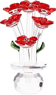 WINOMO クリスタルフラワー置物飾り春ローズブーケクリスタルガラスの花人工花植物像花飾りオフィステーブルホーム装飾