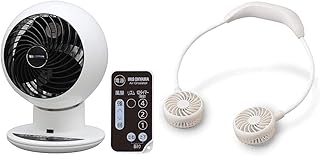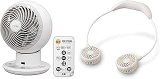 【セット買い】アイリスオーヤマ サーキュレーター アイ 静音 上下左右首振り 24畳 パワフル送風 DCモーター リモコン付き ホワイト PCF-SDC15T+携帯扇風機 首掛け ネックファン 充電式 JNF-16-W バニラ