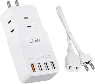 Ewin 電源タップ USB コンセント タップ 4個usb口 3個ACコンセント Quickcharge3.0搭載 急速充電 延長コード付き マルチタップ OAタップ コンパクト 自宅用 旅行