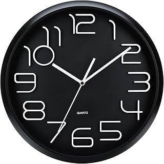 Woophen 13インチ 読みやすい 大きな数字 壁掛け時計 静音 カチッと音が出ない 品質 クォーツ 電池式 自宅/オフィス/学校の時計に最適 (ブラック)