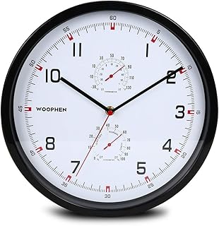 WOOPHEN モダン 静音 壁掛け時計 カチッと音が出ない 12インチ 高品質 クォーツ 電池式 ラウンド 読みやすい 家/オフィス/キッチン/学校の時計 (ブラック)