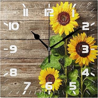 壁掛け時計 静音 チッキング ひまわり ヴィンテージ 壁掛け時計 正方形 12インチ 電池式 クォーツ 静音デスク時計 ホーム リビングルーム キッチン 農家 バスルーム 寝室 オフィス 学校用