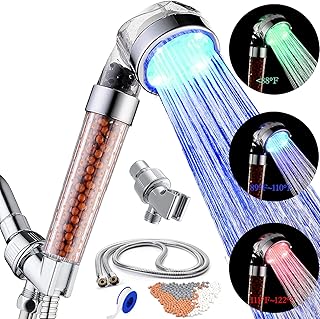 Cobbe フィルターシャワーヘッド ホース付き LEDライト シャワーヘッド 3色変化 Zenbody 手持ちシャワーヘッド ビーズ付き 高圧イオンシャワーヘッド