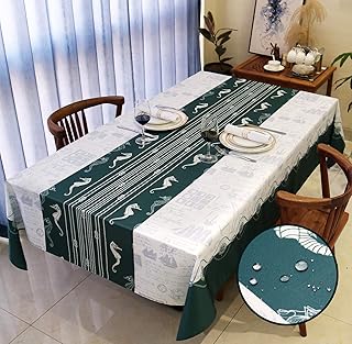 SANBOLI 長方形テーブルクロス こぼれ防止 耐油 防水 汚れ防止 装飾テーブルクロス ホーム ピクニック パーティー ホリデー デコレーション テーブルカバー (海馬 グリーン 60 x 84インチ)
